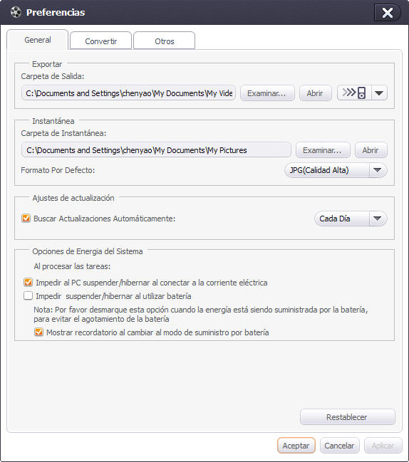 Primero, clic en Herramientas > Preferencias, para ajustar varios parámetros como la velocidad del proceso de ejecución, la acción "Después de Finalizar" y otros más.